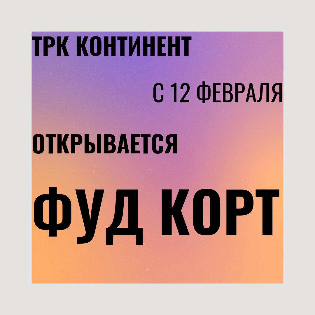 В эту пятницу, 12 февраля, начнет работать фуд-корт в ТРК "Континент"!