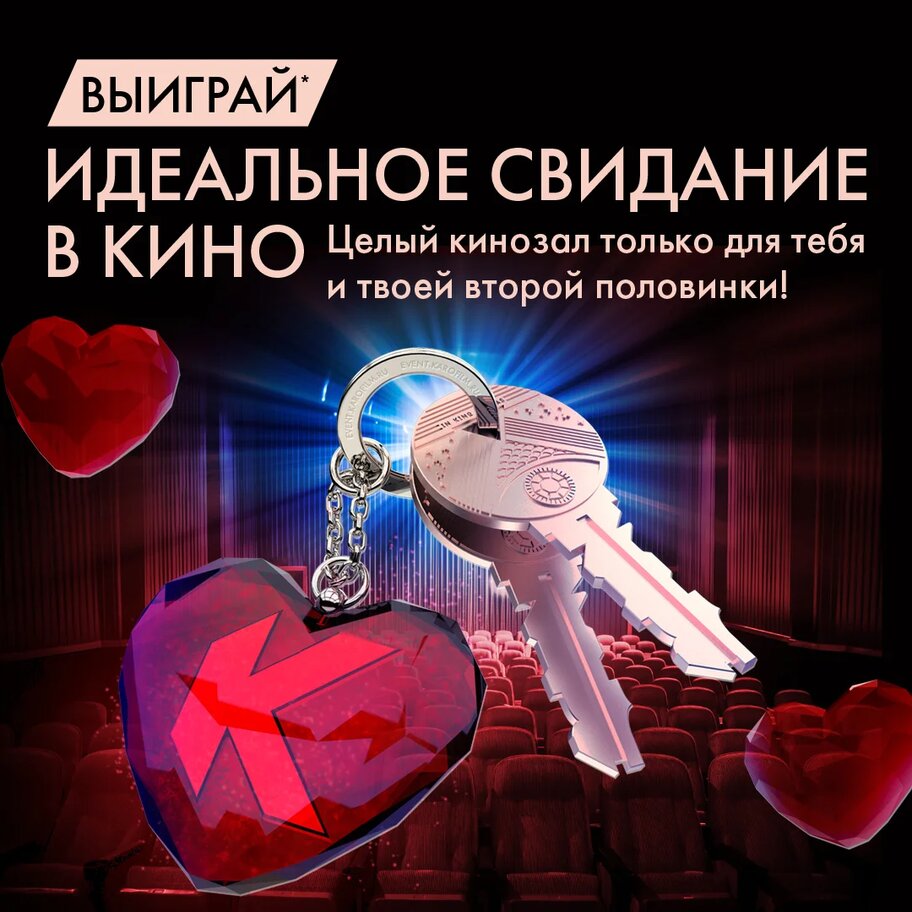 * Ключи от зала - это бронь целого кинозала в любом кинотеатре КАРО на 1 киносеанс, включая показ выбранного кинофильма из репертуара кинотеатра.
