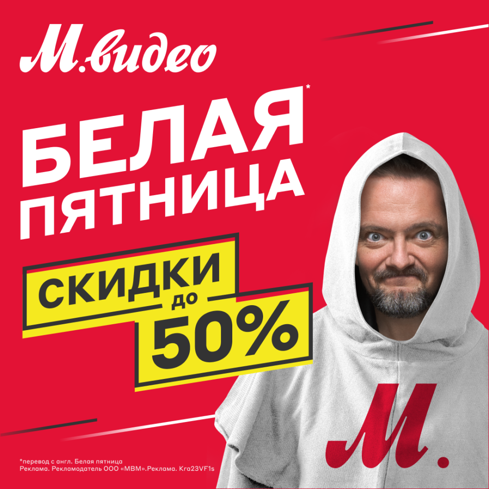 В период с 6.06.2023 г. по 19.06.2023 г. включительно во всех магазинах «М.Видео», включая интернет-магазин (покупки, совершенные на сайте www.mvideo.ru и в мобильном приложении, а также через операторов контакт-центра), проводится рекламная акция «White Friday/Белая пятница».